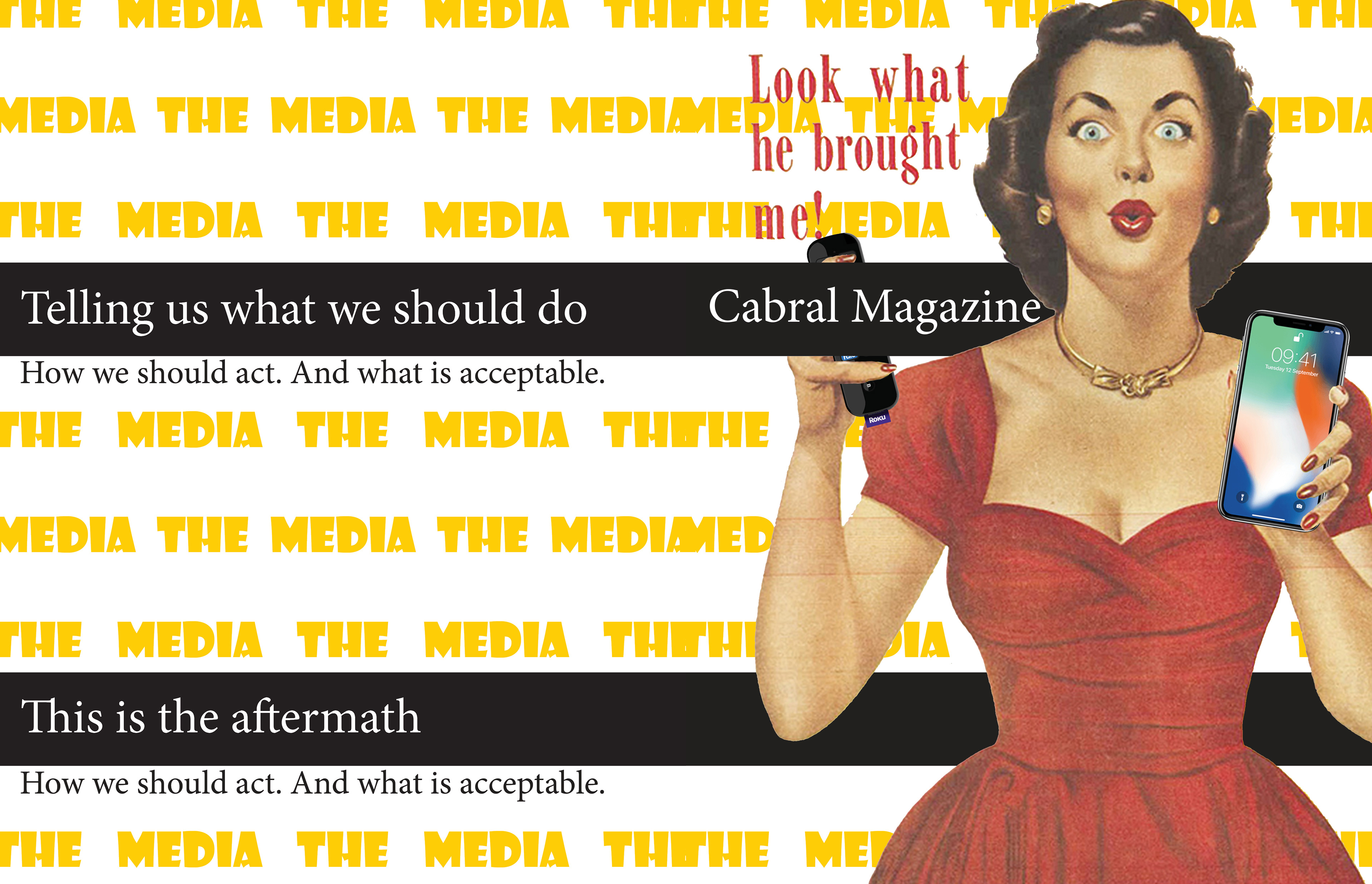 This is a publication about media culture now with tare out posters for each subject. Each poster is designed by me using appropriated images to relay how media affects our everyday life. Click the image below to see and preview of the magazine and order a copy!