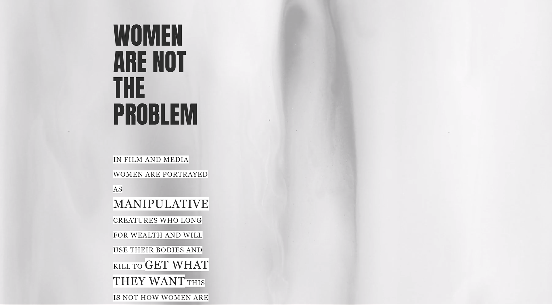 In conjunction with the ManEater poster design, this website intends to inform tricked readers about the medias perception of women and how it has been affecting society's perception. This is a simple web design that features a video background, gif, and hit counter to show "how many men have been saved." Click on the image to visit the site and make sure you have your sound turned on!